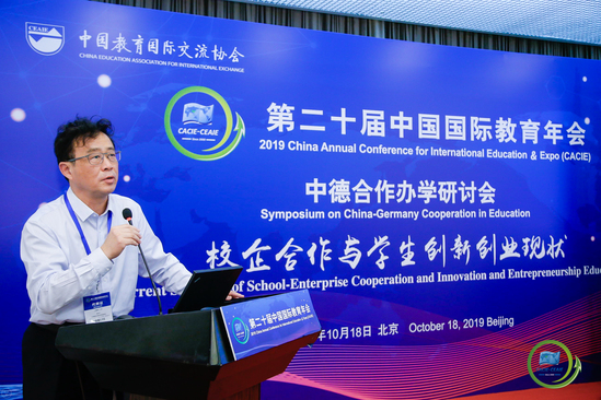 10月17日至19日,由中国教育国际交流协会主办的第二十届中国国际教育年会(以下简称“年会”)全体大会在北京国家会议中心隆重举行。本届年会以“教育2035——对话世界的未来”为主题,共同探讨面向2035年教育现代化,如何推动更高水平的教育对外开放,并分享各国教育发展成就和经验,研讨全球教育面临的共同问题,共同擘画国际教育发展的美好蓝图。中华人民共和国教育部党组书记、部长陈宝生致辞。浦京官网中德国际学院受邀参加会议和中外合作办学成果展,并承办教育年会高等教育板块的重要组成部分之一——“中德合作办学研讨会”分论坛。