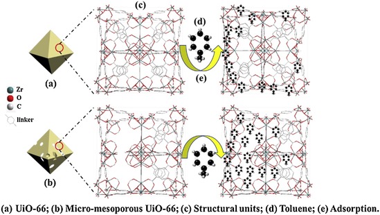 我国以细颗粒物(PM2.5)、臭氧(O3)和酸雨为特征的区域性复合污染状况日益严重,直接威胁到人类的健康。相关研究显示,挥发性有机物(Volatile Organic Compounds、VOCs)是形成PM2.5和O3的关键前体物,是复合型大气污染的重要诱因。因此,张晓东等人制备了一系列改性MOFs材料用于吸附去除甲苯,系统地研究了改性MOFs材料的甲苯吸脱附等温线以及动力学。该研究方向目前已培养毕业1名硕士研究生,3篇论文入选ESI高被引论文,其中2篇论文入选前0.1%热点论文。