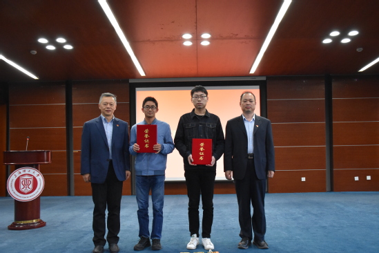 艾连中、魏东为”科创先锋“一等奖获奖学生颁奖