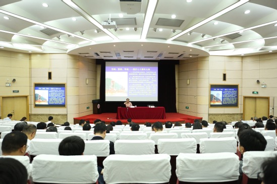 忻平在报告中围绕“学习党史、新中国史的必要性和深刻内涵”进行阐述。他讲道,中央要求把学习党史和新中国史作为主题教育的重要内容,认真学习党史国史来弄清楚我们从哪里来、往哪里去,弄清楚艰苦卓绝是什么、是怎么来的,做到“四个了解”和“五个深刻认识”,知史爱党、知史爱国。忻平在讲解中结合“宁断肠不断脊梁,为苏维埃新中国流尽最后一滴血”的陈树湘、“古田会议”等历史人物和事件,从历史与现实两个维度论述了学习党史、新中国史的必要性。他表示,百年党史中蕴含着中国共产党的光荣传统、宝贵经验和伟大成就,为我们化解风险、从容应对“百年未有之变局”贡献中国智慧和中国经验。最后他重点介绍了坚持群众路线的重要性,他讲道,毛泽东思想活的灵魂是党的群众路线,归纳起来就是“从群众中来,到群众中去”。习近平总书记始终把人民放在心中最高的位置,这是新时代践行群众路线的体现。“以人民为中心”,既是新时代中国特色社会主义思想的重要内容,也与全心全意为人民服务党的宗旨和群众路线是党的根本工作路线紧密相关。