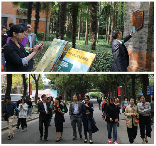 在沪江美术馆出发前,每位参与教工在扫码签到后需要回答11道包含上理工校史知识、新中国成立七十周年和“不忘初心、牢记使命”主题教育相关知识,还要完成对学校祝福、对未来的期盼等3道文字填写题,抒发爱国荣校的美好愿景;漫步沪江文化园时扫码铭牌,体验学校“建筑可阅读,文化可触摸”的沪江优秀历史建筑的人文特色;校史馆参观,让参与者亲历学校113周年的发展脉络。本次活动将“爱国荣校”教育和“健步健身”活动相结合,得到了热爱健步走活动教师的欢迎和肯定。参与的教职工也以“健步走”的形式,为3522vip浦京集团官网113周年校庆献上祝福!