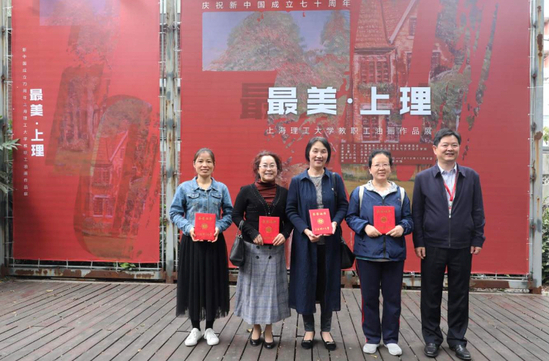 在展览的颁奖环节,孙跃东为一等奖作品获得者夏春蕾《580林荫大道》、王蕾《轻舞飞扬》、宋利敏《雪韵思晏堂》、肖欣招《钟楼》颁发获奖证书,为本次展览特别荣誉奖获得者付玉竹、李娇、严家伟、杨苗蕾等颁发获奖证书;吴建安为二等奖获得者沈莉《沪江园的夏》、曲洪征《浅夏的小屋》、周海玲《绿萌小亭》、周萍《雨后的德国文化交流中心》、刘晓冬《校园里的小洋楼》、应捷《上理校园之春-英国文化交流中心》 颁发获奖证书;校工会常务副主席朱莉、医食学院党委书记黄慧为三等奖获得者徐志林《树》、侯俊《雨过天晴》、苏湛《洋楼观雪》、肖欣招《深秋》、张敏燕《清晨的音乐堂》、赵卉子《旧时光里的图书馆》、王蕾《绿荫掩映图书馆》、陈青《青春》颁发了获奖证书;校工会绘画班教师刘晓峰和杨苗蕾为优秀奖获得者曹芳《小径深处的红房子》、刘淑娟《音乐堂》、周海玲《老房子》、沈莉《教学楼外的春》、张敏燕《梦幻小屋》、周萍《樱花道》颁发获奖证书;