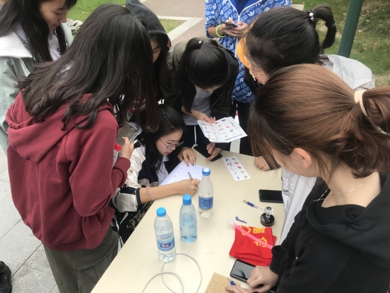 团队在完成活动最后一站时回到大本营,完成了趣味横生的垃圾分类小游戏,同学们带着打卡成功的地图凯旋而归,在百年图书馆门前合影留下值得纪念的一瞬间。