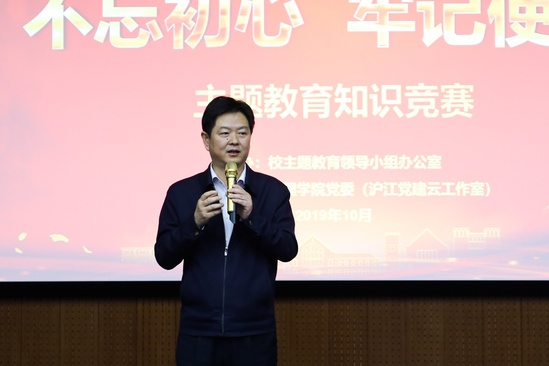 出席活动的领导嘉宾依次为获奖选手及参赛单位颁发了荣誉证书和奖牌。校党委副书记孙跃东在总结讲话中指出,根据党中央、上海市委和市教卫工作党委的部署和要求,学校主题教育各项工作正在扎实开展。孙书记肯定了本次知识竞赛在学校主题教育中的积极作用,并对全校学生党员和积极分子提出两点要求:一要不忘初心、牢记使命,坚定信心跟党走,自觉地把自身需求与社会需求相统一、把个人发展与社会发展相结合、把个人命运与国家命运相关联;二要不断强化理想信念,锤炼政治品质,对党忠诚,学生党员要积极发挥先锋模范作用,带动身边的人投身国家建设和民族复兴事业。