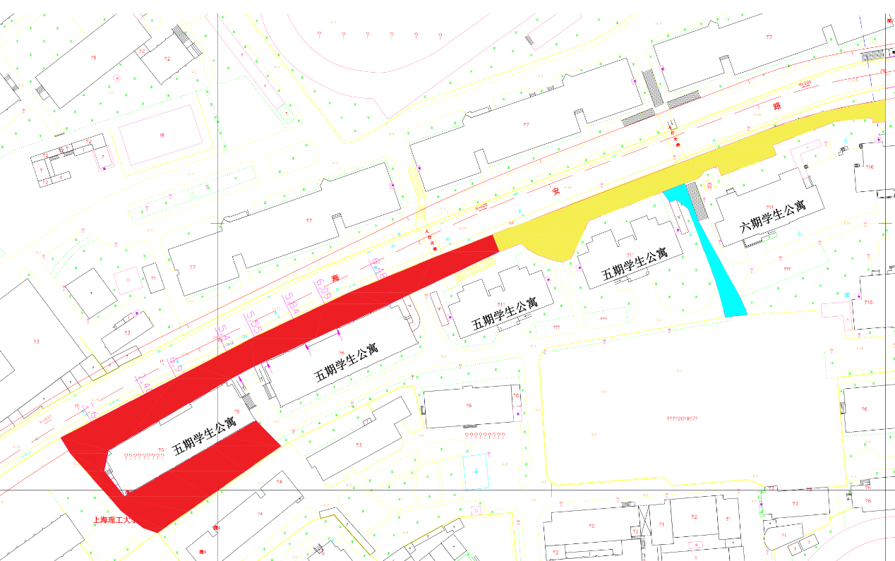 在此期间,新增封闭区(红色部分)及原有封闭区(黄色部分),人员及车辆均无法通行。非封闭施工区(青色部分)人员车辆可通行,但需听从现场人员指挥。烦请开车的老师和毕业生离校的车辆避开封闭区停放,人员及车辆避让封闭施工区,人员及车辆穿行非封闭施工区注意自身安全,服从现场人员指挥。施工期间给学校师生出行带来不便,敬请谅解。