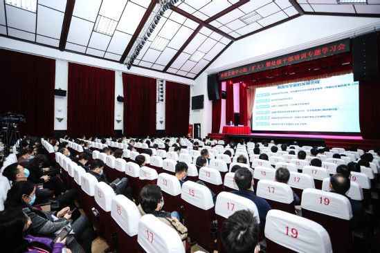全体在校校领导、中层干部,全体辅导员,党校处级干部培训班学员,光电学院师生代表参加学习会。