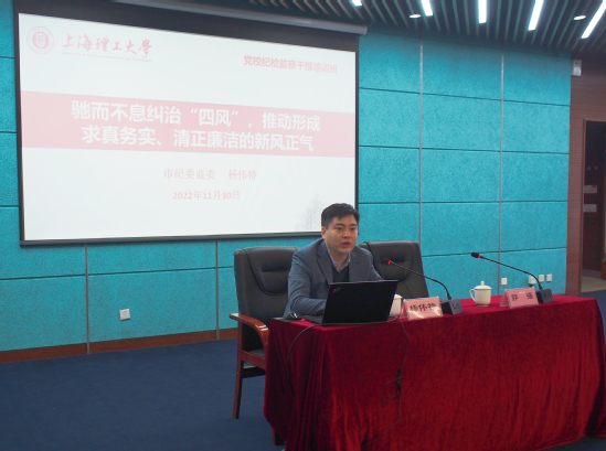 11月30日,3522vip浦京集团官网纪委在图文信息中心第一会议室召开二级单位纪检监察干部工作会议,深入学习贯彻党的二十大精神并听取专题报告。上午,特邀上海市纪委监委党风政风纪检监察干部杨伟特作题为“驰而不息纠治‘四风’,推动形成求真务实、清正廉洁的新风正气”的专题报告。下午,特邀上海健康医学院纪委办公室主任、纪检监察室主任施奇作题为“做好日常监督,推进政治监督具体化精准化常态化”的专题报告,报告会由浦京官网纪委监督检查室副主任郭强主持。