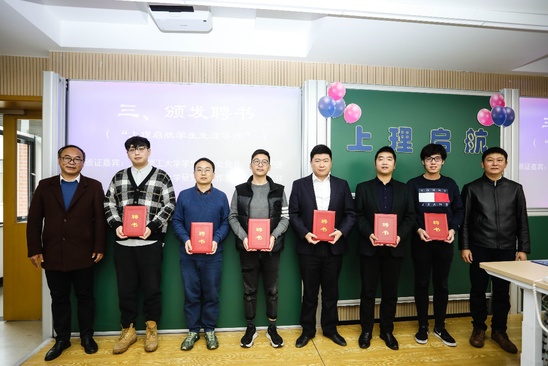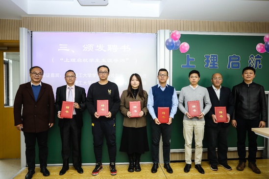 首届“上理启航”学生生涯导师共69位,均毕业于海内外知名高校,既有董事长、总经理等,又有千锤百炼的业界精英,行业分布囊括能源、制造、教育等基础领域,和人工智能、大数据、碳中和、医工交叉等新兴行业及交叉领域。学生工作处处长何炉进、研究生工作部部长彭宗祥为到场的贝圣颉等30位导师代表颁发聘书。