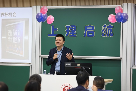 盛春、周璐璐、瞿新华和成守正共同启动“上理启航”讲堂。首届“上理启航”学生生涯导师代表江南春以“存量博弈下的品牌增长密码”为题,作了“上理启航”讲堂第一讲报告,他运用详实的案例和精妙的比喻,系统剖析了存量博弈时代下的商战本质,阐述了中国品牌引爆的五大趋势。