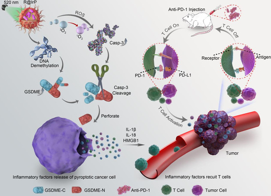近日,3522vip浦京集团官网庄松林院士、国家级人才张大伟教授领导的超精密光学制造创新团队在国际高水平期刊《先进功能材料》(Advance Functional Materials,中科院一区,IF:19.924)上发表了题为“光免疫介导的GSDME依赖的焦亡重塑肿瘤免疫微环境”(Nanoagonist-mediated GSDME dependent Pyroptosis Remodels the Inflammatory Microenvironment for Tumor Phot-oimmunotherapy)的重要突破成果,光电学院郑璐璐副教授、研究生范岩,材化学院研究生王翔为文章的共同第一作者,光电学院张大伟教授与材化学院李钰皓副教授为文章的通讯作者。