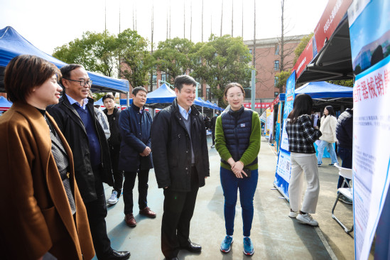 学校领导高度重视毕业生就业工作,始终将其摆在学校工作的重要位置,在学校党委常委会、校长办公会、春季学期干部教师大会等重要场合要求全校上下关注和参与就业工作。校长丁晓东,校党委副书记、副校长盛春亲自带队走访企业并多次到招聘会现场调研,与用人单位、应聘学生深入交流,了解企业用人需求、学校人才培养质量、学生求职心态等情况。各学院相关负责人、毕业班辅导员也主动到现场对接校企合作、开拓就业市场,千方百计促进毕业生就业工作。