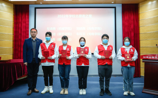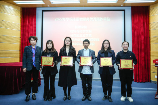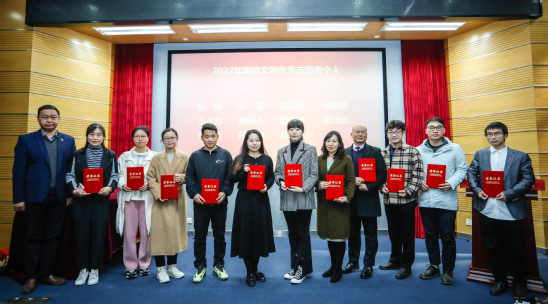 会议表彰了2022年志愿者之星、网络文明志愿者优秀个人和志愿者服务优秀集体。为鼓励2023年继续做好学校志愿者服务工作,还举行了创建全国文明校园文明志愿者督察队授旗仪式。