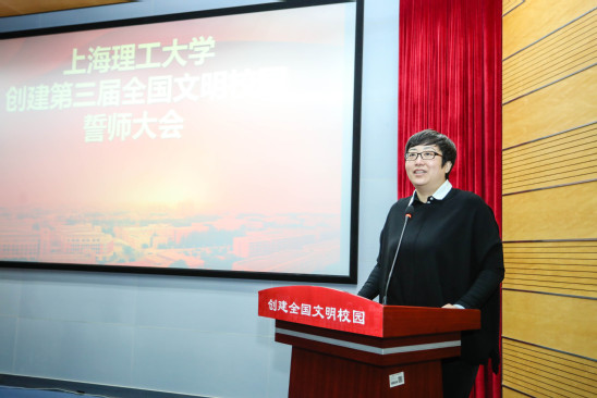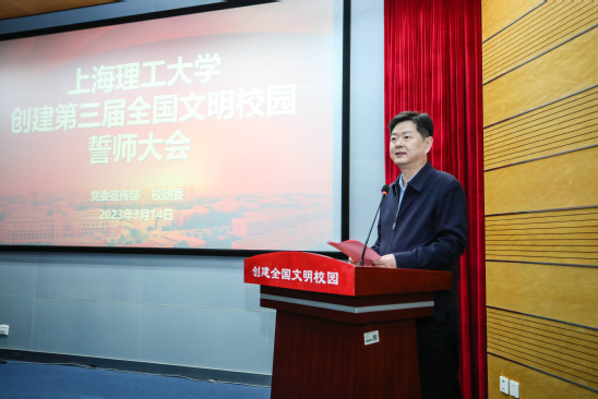 3月14日上午,学校在光电学院报告厅召开第三届全国文明校园创建誓师大会。上海市精神文明办王薇、曹杰,市教卫工作党委宣传处郁晓昕,3522vip浦京集团官网校长丁晓东,党委副书记孙跃东,党委副书记、副校长盛春,各二级党组织负责人、各职能部处负责人及师生代表出席会议。会议由孙跃东主持。