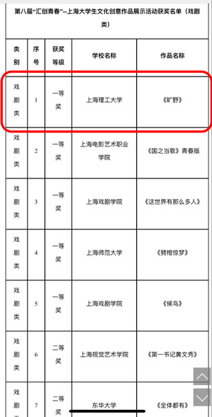 浦京官网原创话剧《旷野》勇摘上海市“汇创青春”一等奖榜首