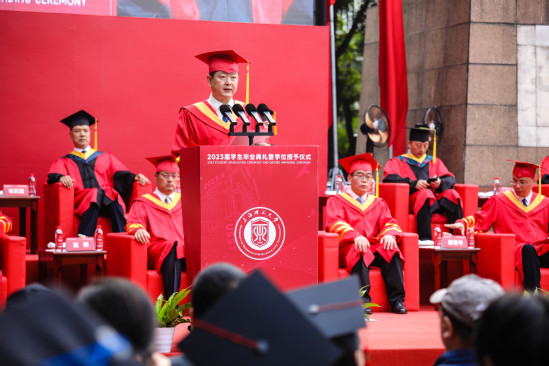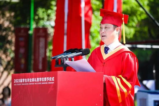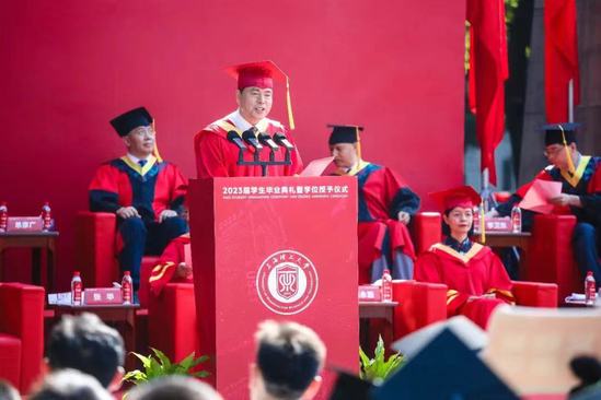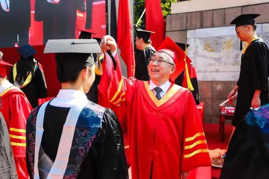 “今日的加冕是你们重要的人生仪式,而校长的毕业致辞,我更愿意定义为‘最后一课’。希望多年以后,当你们再次回顾起这临行前的‘唠叨’,依然能够有所思、有所悟。”在毕业典礼上,校长丁晓东的寄语作为“最后一课”,给毕业生们留下了深刻的印象。