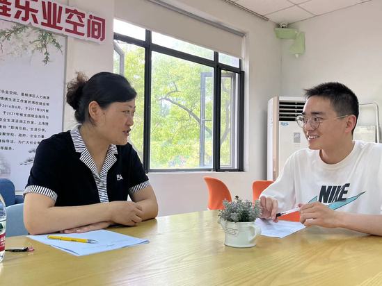 学生就业指导中心陈锦秀为毕业生韩彬杰分析就业疑惑