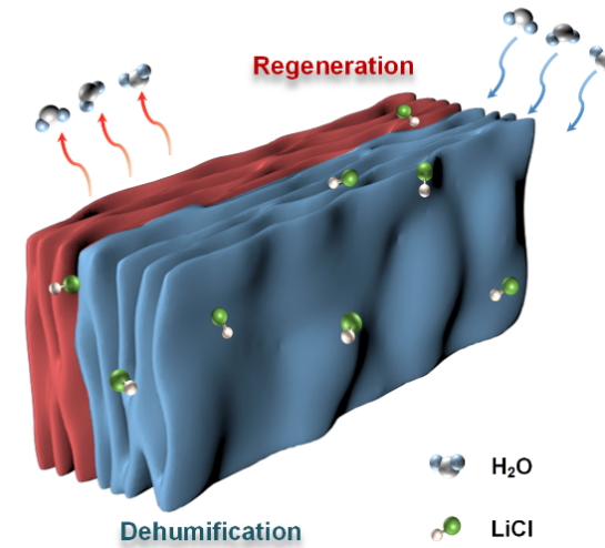 可得然复合凝胶吸附除湿的概念图