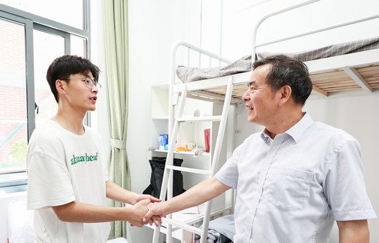 盛春一行走访了研究生新生公寓并了解新生的住宿情况,他对新同学表示热烈欢迎并与家长们进行亲切交流。从学生生活到科研目标,从职业规划到专业素养,盛春为研究生萌新们送去温暖的关怀与亲切的问候,同时他还叮嘱同学们要时刻牢记学校“信义勤爱 思学志远”的校训,养成良好作息习惯,加强体育锻炼,保持积极健康、乐观向上的生活态度,要珍惜学习机会,以全新的姿态开启研途新征程。