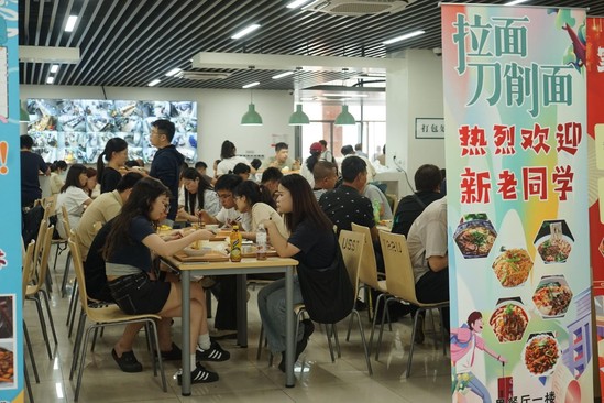 思餐厅中,2023级出版印刷与艺术设计学院新生张胜杰正在和爸爸妈妈分享迎新套餐,她说:“一楼的石锅拌饭很好吃,还有免费的辣白菜和酸奶,量大且价格实惠,一份饭我一个女生可以吃两顿了。”新生家长也表示:“餐厅环境好,操作智能化,孩子在这里生活我安心、放心。感谢学校各个部门、各位老师同学的暖心迎新,我们陪孩子来报到,深感不虚此行。”