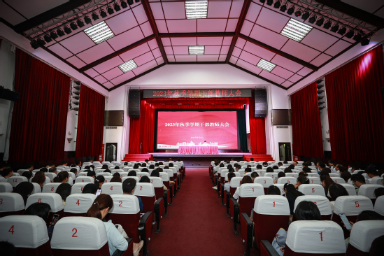 9月6日下午,学校在大礼堂召开2023年秋季干部教师大会。党委书记王凌宇传达上海市2023年秋季高校党政负责干部会议精神并作总结讲话,校长丁晓东主持会议并部署新学期工作。校领导、中层干部、学科负责人、独立设置研究院负责人、科级干部和专技负责人、民主党派负责人、无党派人士代表、辅导员等参加会议。