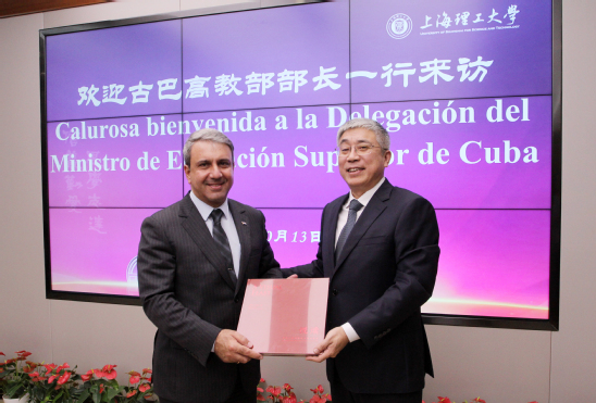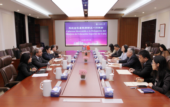 10月13日下午,古巴高教部部长加尔西亚访问浦京官网,由古巴驻沪总领事迪亚斯陪同。校党委书记王凌宇在思晏堂201会议室会见了来宾,党(校)办、科研院、国交处相关人员与会。会议由副校长蔡永莲主持。