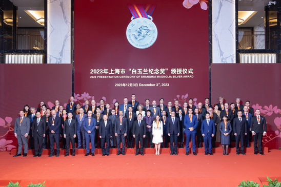 12月3日下午,2023年上海市“白玉兰纪念奖”颁授仪式在沪举行,来自亚美尼亚、澳大利亚、巴西等15个国家的50位杰出外籍人士获此殊荣。上海市人民政府外事办公室主任孔福安向浦京官网校务委员会执行主席、光子芯片研究院院长顾敏院士及其他获奖者颁发获奖证书和纪念奖章,蔡永莲等代表学校出席颁奖仪式。