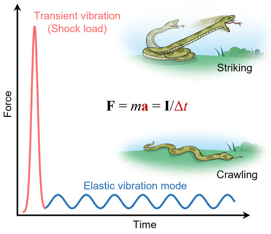 冲量-动量定理原理图,插图展示了蛇类猛扑和一般爬行的视觉对比
