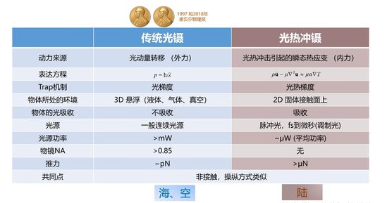 传统光镊与光热冲镊对比