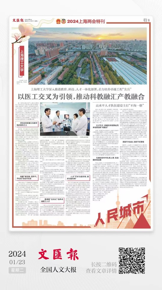 医工交叉的意义不仅在于以科技创新培育生物医药“新质生产力”,更在于探索出卓越医工复合人才培养范式。近年来,学校先后成立医工交叉研究生院、卓越工程师学院、东方泛血管器械创新学院、公利医院医疗技术学院等。这些育人平台的显著特点就在于将医工交叉项目转变为人才培养资源,通过任务驱动、项目驱动,在“真刀真枪”实战中培养医工复合人才。