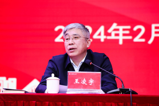 党委书记王凌宇首先传达了副市长解冬、市教卫工作党委书记沈炜、市教委主任周亚明在上海高校党政负责干部会议上的讲话精神。他在总结讲话中指出,过去一年,学校事业发展取得的各项成绩离不开全校师生员工的共同努力。2024年是新中国成立75周年,是实施“十四五”规划的关键一年,也是学校落实高质量发展三年行动计划的开局之年,全校上下要乘势而上、奋发作为、真抓实干,推动各方面工作不断取得新的突破。他强调,要进一步解放思想,大胆改革创新,不断巩固拓展主题教育成果,坚持以思想破冰引领改革突围,向改革要动力、向开放要资源、向创新要办法,敢想敢干,敢于突破束缚,敢于放开手脚,勇于抢抓先机。要把高质量发展作为主题、主线、第一要务,坚持高标准严要求,抓住改革创新的关键点,推动学校高质量发展三年行动计划落实见效。要更好统筹发展和安全,始终保敏锐性、敏感性,守好意识形态主阵地,严格校园安全生产管理。要关心关注师生的期待和需求,全力以赴做好2024年毕业生就业工作。他要求,领导干部要永葆干事创业热情,主动去做难事、去担重任,真刀真枪动真格,确保各项工作取得实实效。要坚持实事求是与登高望远相结合,主动沟通协调,确保高质量发展的各项任务“同题共答”。各部门要各司其职、各负其责,密切配合、通力合作,勇于负责、敢于担当,以高质量发展的优异成绩迎接学校第九次党代会召开,在高等教育强国建设中展现上理新担当、新作为。