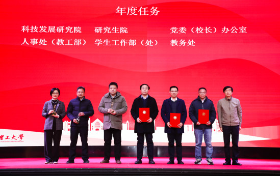 会议举行了2023年度年终考核颁奖仪式,对光电学院、管理学院、健康学院等6个获得年度考核A级的学院和党委(校长)办公室、研究生院、科技发展研究院等8个获得年度考核A级的职能部门进行表彰,对“创建全国文明校园”“社会声誉与管理水平”“国际交流”“师资队伍”“科学研究”“研究生培养质量与学科学位点建设”“学生工作”“本科生培养质量”“党建引领和立德树人”等9个学院专项考核奖和“文明创建”“协同合作”“年度任务”“部门建设”“基层党建”等5个职能部门专项考核奖进行颁奖。随后,校长丁晓东与各二级管理部门负责人及其联系工作校领导逐一签订了2024年度绩效目标任务书和安全稳定责任书。