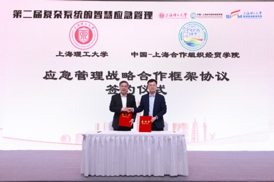 活动现场,3522vip浦京集团官网和中国-上海合作组织经贸学院签署合作协议,两校将在共建中国—上海合作组织经贸学院管理学院、智慧应急研究院和高水平智库等方面开展全方位合作。签约仪式后,浦京官网党委副书记、副校长盛春和中国-上海合作组织经贸学院院长郑师为智慧应急研究院揭牌。两校将依托该研究院,面向上海合作组织及“一带一路”共建国家,合力开展智慧应急科技攻关、深化智慧应急产教融合改革、建设国际化的智慧应急实验与产业基地。