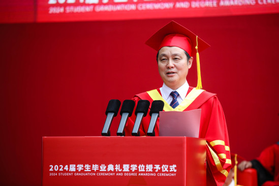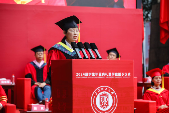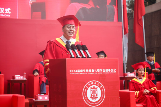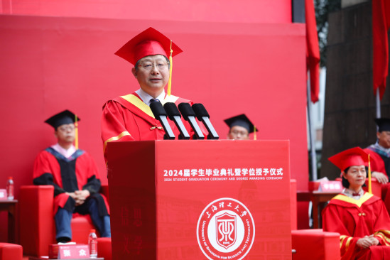 “国之所需,吾之所向,培育和发展新质生产力,上理人应有所作为,也能大有可为。”丁晓东校长对新时代上理毕业生们提出期望,希望同学们胸怀“国之大者”,奔赴新质生产力的主战场施展抱负、建功立业,成为塑造高质量发展新优势新动能的有生力量,为中国式现代化注入强劲动力,在实现民族复兴的伟大征程中书写精彩华章。
