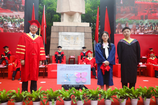 当儿童节遇上毕业典礼,也给这特殊的日子加了一些“可爱”的氛围。丁晓东校长笑谈道:“今后无论同学们身处何地、走得多远,母校是你们永远的家,欢迎大家常回家看看!今天正值‘六一’,祝愿同学们大鹏展翅此去前程似锦,阅尽千帆归来仍是少年!”引来毕业生们的欢呼。在外语学院毕业生杨煦涵看来,大学带给她了太多成长与收获,也给予了她很多的机遇与挑战,前20余年在今日有了最完美的“闭环”。“我希望毕业后的自己,能永远保持儿童一般的求知欲和好奇心,同时也能不忘初心,追风赶月乘风破浪,勇敢无畏地奔向更大更广阔的世界。”