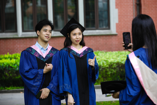 出版学院硕士毕业生马瑜禧的母亲、外婆和姨奶奶从新疆赶来参加毕业典礼,三代人在上理校门口合影留念,马瑜禧笑得格外灿烂。“信义勤爱、思学志远。这是我们上理的校训,我把它写到了毕业论文的致谢中,也会继续写到我一生的实践中。”