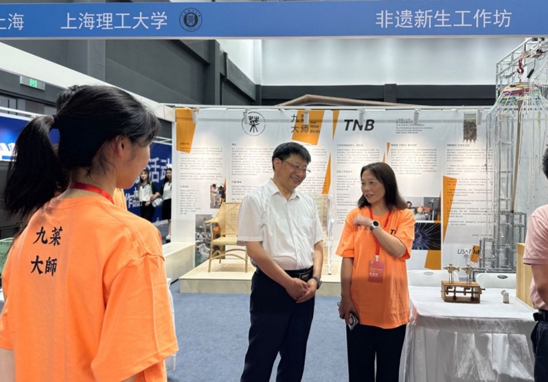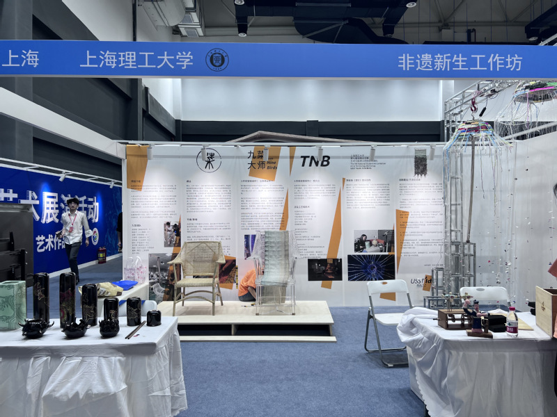 6月12日至6月18日,非遗新生工作坊参加艺术实践工作坊展出。团队成员从传统非遗技艺中解构独特的东方智慧进行再创作,以装置的形式呈现重构出两件“新生”非遗作品:“立体缂丝秋千”和“椅太白”,体现了艺术与科技的结合。工作坊展出项目得到了教育部领导、上海市教委领导的肯定和鼓励支持以及各级电视台报道。