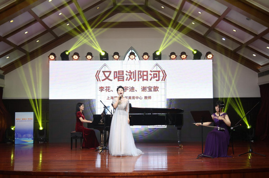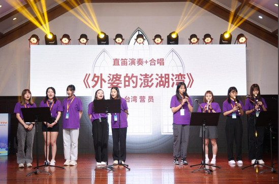 开营仪式上,浦京官网美育中心教师李花、张宇迪、谢宝歆以钢琴二胡伴奏+独唱的艺术形式演绎民谣《又唱浏阳河》热情欢迎港澳台三地青年学子。台湾营员表演了合唱《外婆的澎湖湾》、香港营员演唱《学生哥》,台上台下互动满满一起跟着打节拍,将现场气氛推向高潮,展现了三地青年学子的洋溢青春、活力朝气。