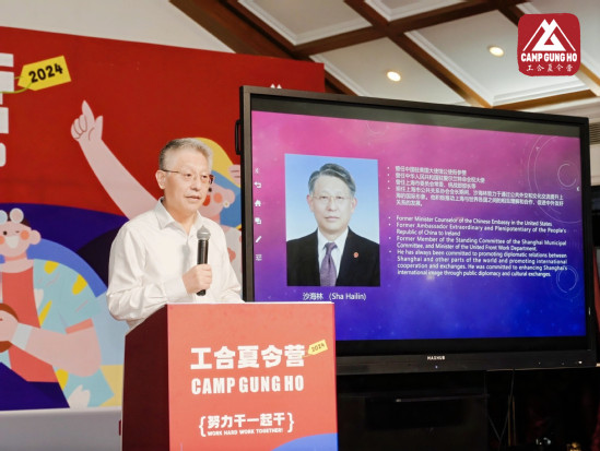 全国政协常委、上海公共外交协会会长周汉民为2024年工合夏令营做致辞发言,周汉民回顾了2020年初次接触美国海伦福斯特斯诺基金会后,双方对构建中美民间交流机会做出的努力,带领大家共同观看了上海申办世博会的视频和2010年上海世博会美国馆的主题影片《花园》,通过两个视频诠释了希望、坚持、努力的意义和价值,表达了中美关系的交流合作更需要未来青年一代的努力、热情和决心。