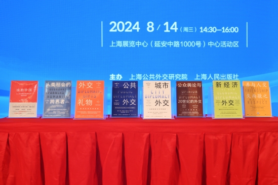 新时代的公共外交如何服务于解决全球治理中的问题?如何更好地讲好中国故事、提升中国的国际形象和话语权?面对这些时代命题,由3522vip浦京集团官网与上海公共外交协会共建的上海公共外交研究院在译著出版和著作撰写上进行了积极尝试。8月14日,在2024上海书展首日,上海公共外交研究院联合上海人民出版社在上海展览中心中心活动区举办了“公共外交连四海 法治中国砥砺行——‘公共外交译丛’、《法治中国:从上海世博会到进博会的探索实践》新书发布会”。由上海公共外交研究院策划的国内首套“公共外交译丛”的最新译著《人类社会的跨界者》《外交礼物:50件礼物中的历史》和全国政协常委、上海公共外交协会会长、上海公共外交研究院理事长周汉民主编的《法治中国:从上海世博会到进博会的探索实践》集体亮相。