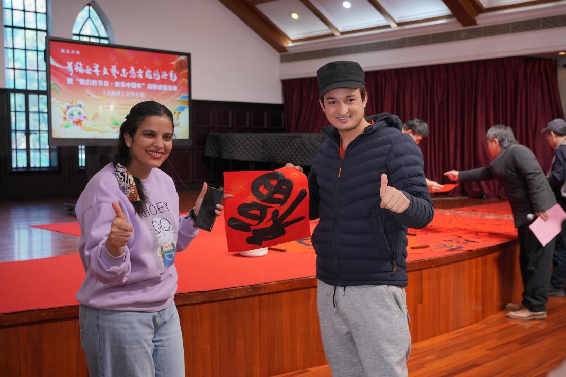 活动最后,书法家们将现场书写的一幅幅笔墨流畅祝愿满满的春联赠送给浦京官网师生,诚挚地祝福上理工“新岁墨香盈学府,杏坛追梦谱华章”。