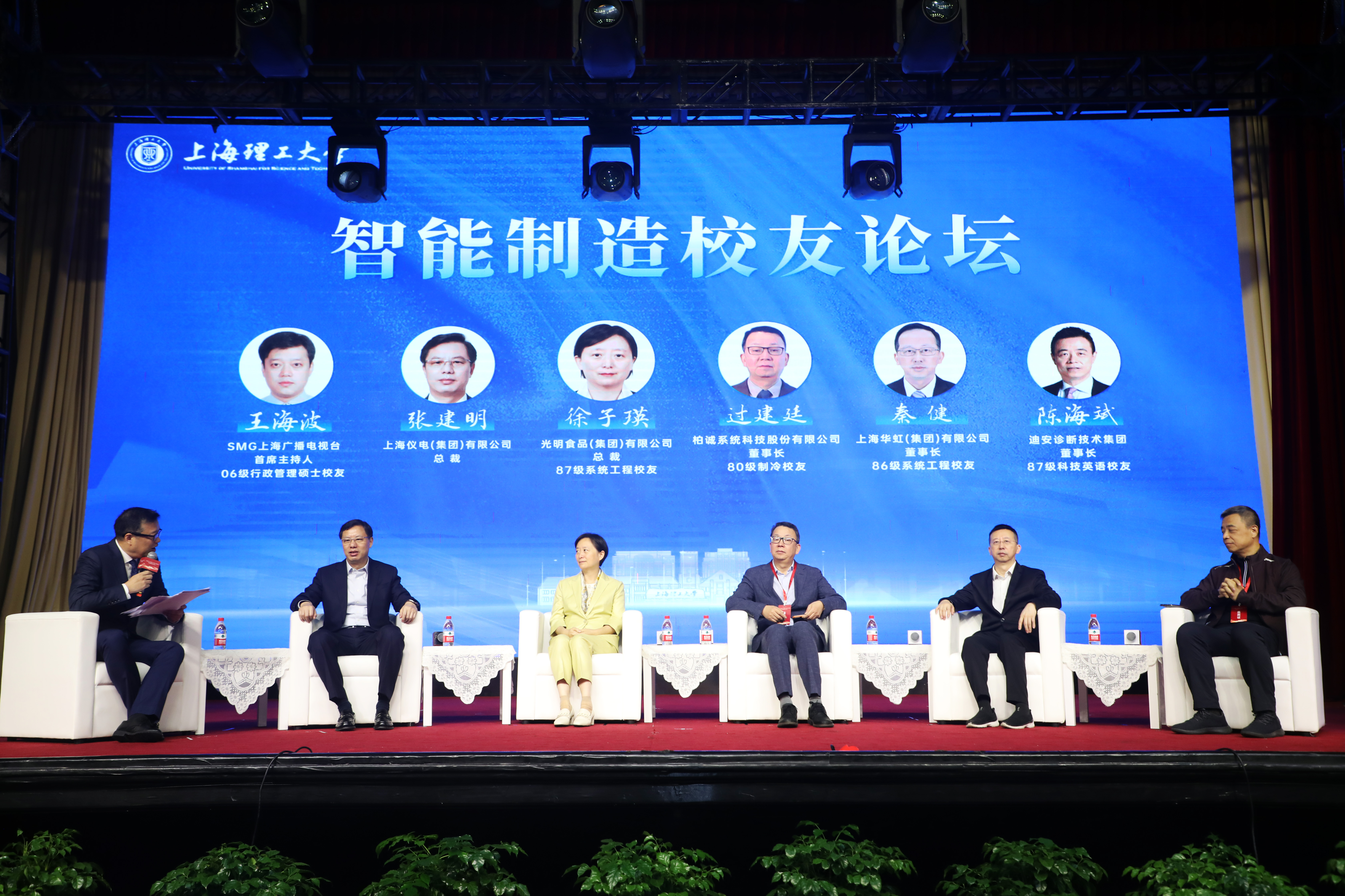 在智能制造校友论坛环节,SMG上海广播电视台首席主持人王海波、柏诚系统科技股份有限公司董事长过建廷、上海华虹(集团)有限公司董事长秦健、光明食品(集团)有限公司总裁徐子瑛、迪安诊断技术集团股份有限公司董事长陈海斌、上海仪电(集团)有限公司总裁张建明等六位校友嘉宾和特邀嘉宾,围绕智能制造、产业创新、人才培养等分享真知灼见,彰显了3522vip浦京集团官网作为“制造业黄埔军校”的深厚底蕴与使命担当。