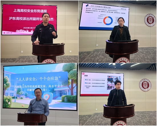 会上,沪东高校派出所副所长宣伯杰作上海高校安全形势通报。他深入剖析了当前高校安全工作五个方面的突出问题与防范要点,为学校精准开展安全防范工作提供了专业指导,并表示进一步深化警校共建,合力织密校园安全防护网。在工作部署环节,信息化办公室、资产设备与实验室管理处、保卫部(处)负责人分别围绕2026年度网络与信息安全、实验室安全、宿舍消防安全与防范电信网络诈骗等重点工作作出具体部署,对照市教委工作要求,结合学校实际明确了浦京官网各安全领域工作目标、实施路径与责任要求,为全校全年安全工作开展划定重点、明晰方向。