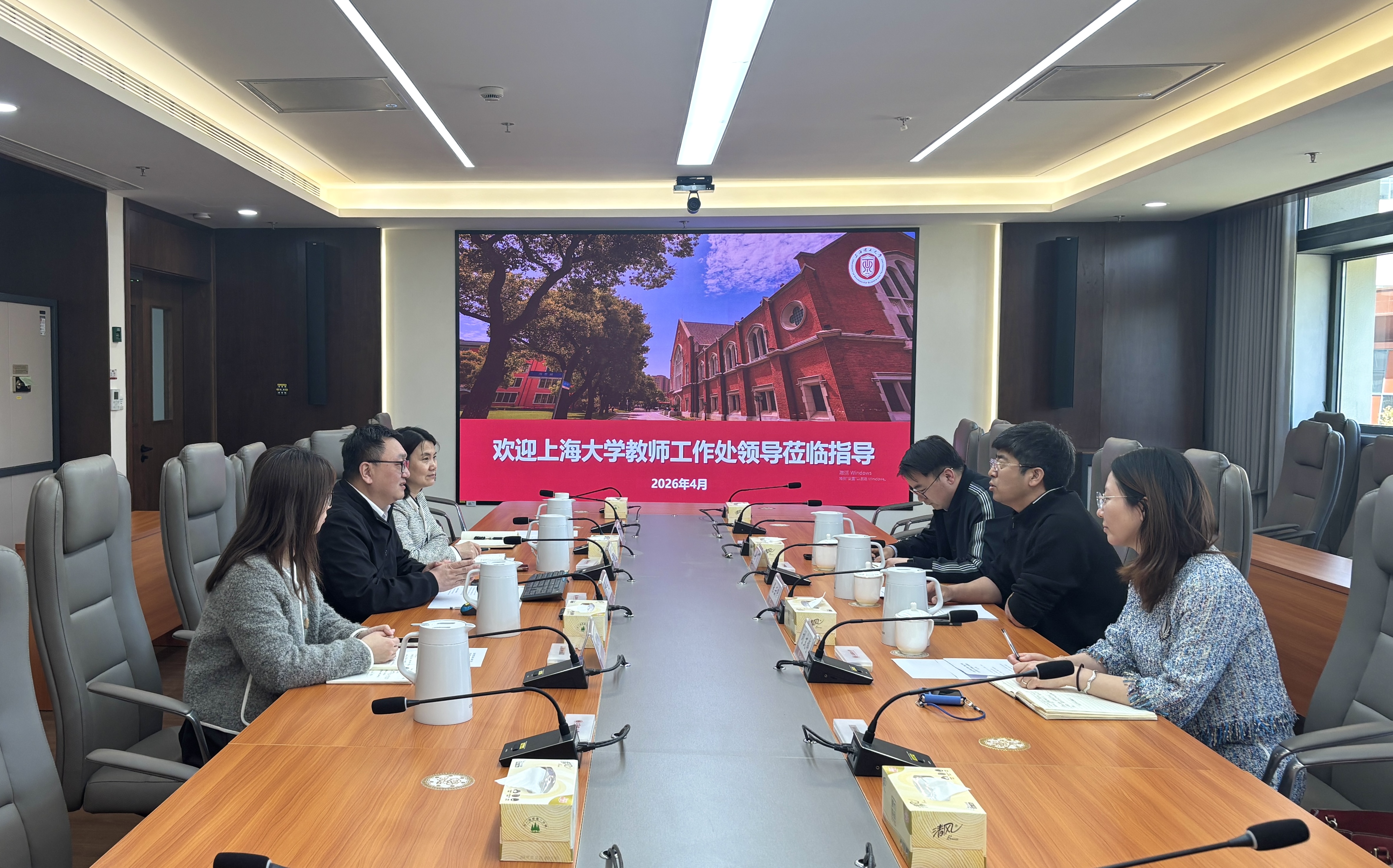 4月7日下午,上海大学组织人事部、教师工作处处长张云中带队来访浦京官网,围绕“新时代高校教师思想政治和师德师风建设工作”开展调研交流工作。浦京官网教师工作部部长、人事处处长甘屹,副部长蒲莹莹及教工部相关工作人员热情接待。